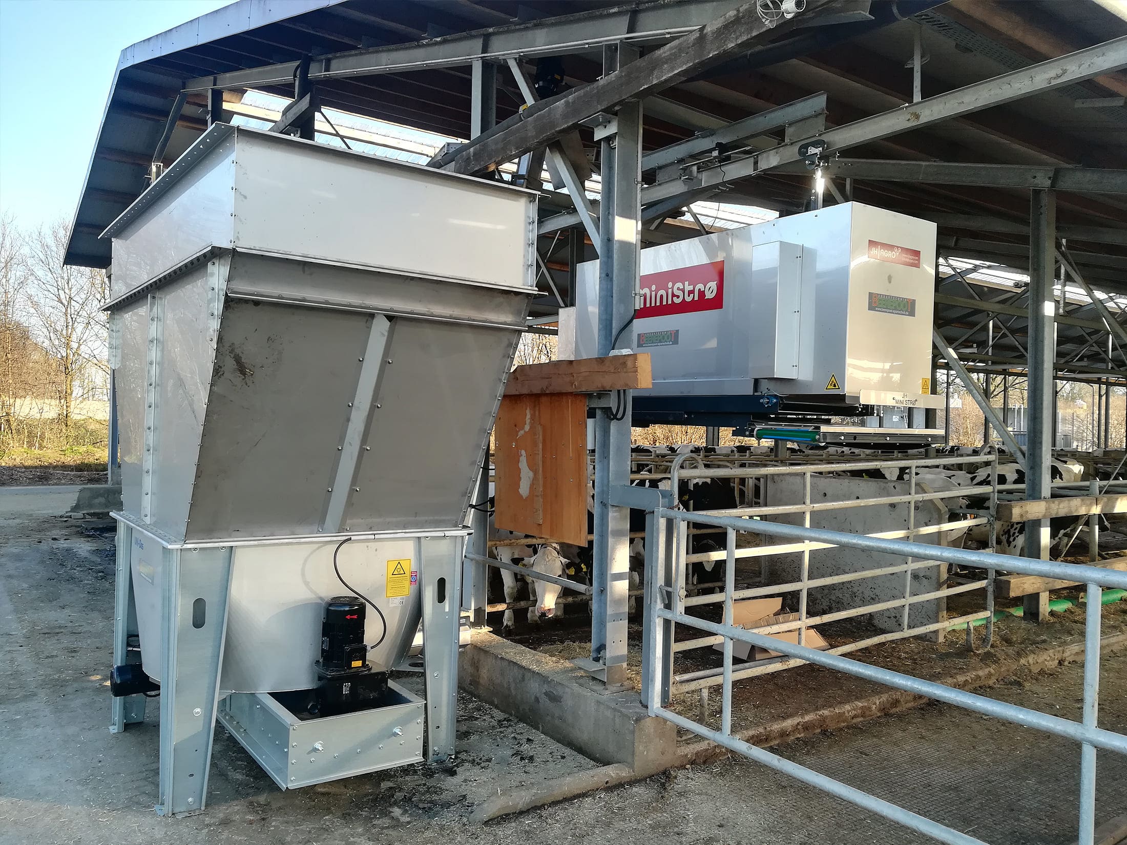 Die festen Bestandteile der separierten Gülle werden direkt in den Vorratsbehälter des Einstreuroboters befördert und können von dort im Stall verteilt werden.